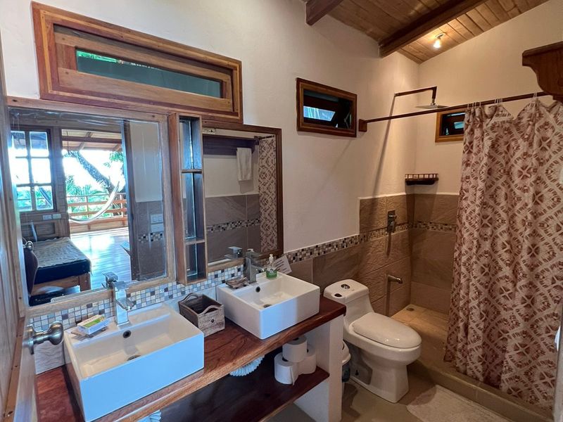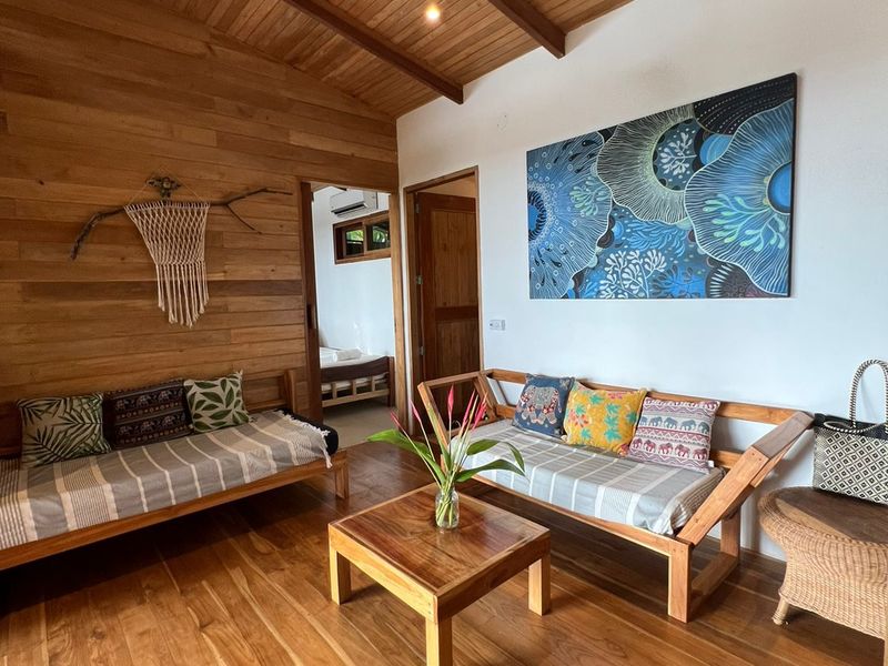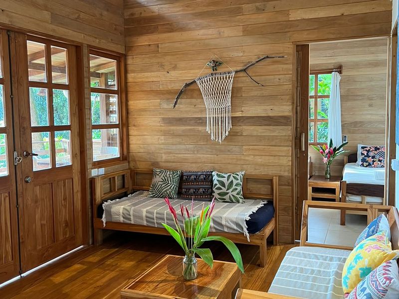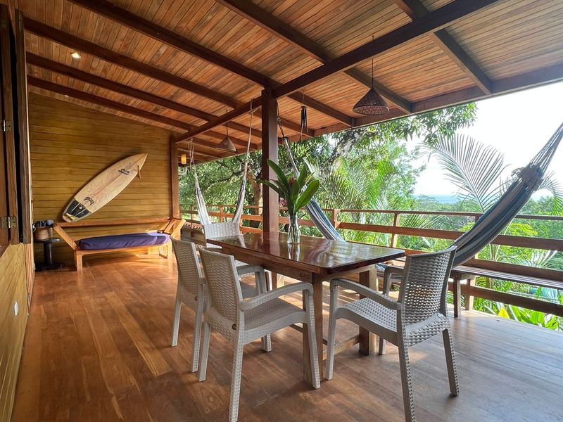 The expansive ocean-facing deck is designed for true indoor-outdoor living. With space for yoga, hammocks, and al fresco dining, it becomes the heart of the home. The private plunge pool and sun loungers create the perfect setting to unwind after a surf session or simply enjoy Santa Teresa’s golden sunsets.