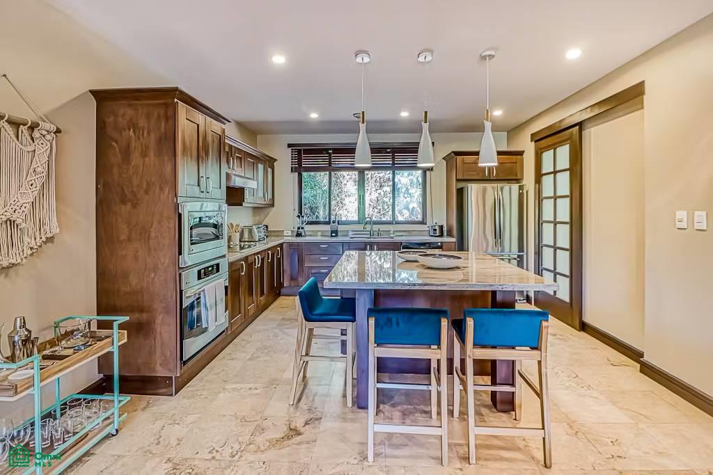 Step inside to find top-quality finishes and high-end furnishings, with elegant travertine floors throughout. The spacious bedrooms include 1 king bed, 2 queen beds, and 2 twin beds, ensuring ample space for family and guests. The gourmet kitchen is fully equipped for culinary enthusiasts, while the beautifully curated tropical décor creates a serene and inviting ambiance. This property is a true gem in the Costa Rica real estate market.