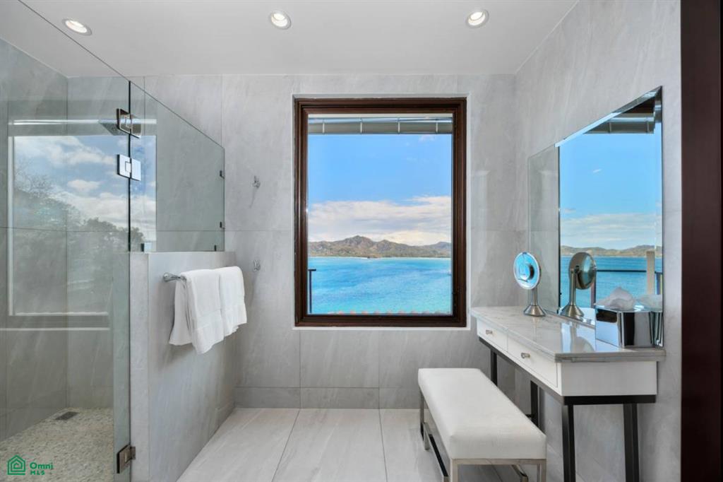 There are 4 generous-sized bedrooms, each one beautifully decorated. Three of them have King beds with oversized ensuite bathrooms with marble walls and showers with a view! The fourth bedroom has a Queen bed and a balcony that overlooks Playa Flamingo. They all come with built-in closets and direct access to a private balcony, ensuring comfort and elegance for every guest.