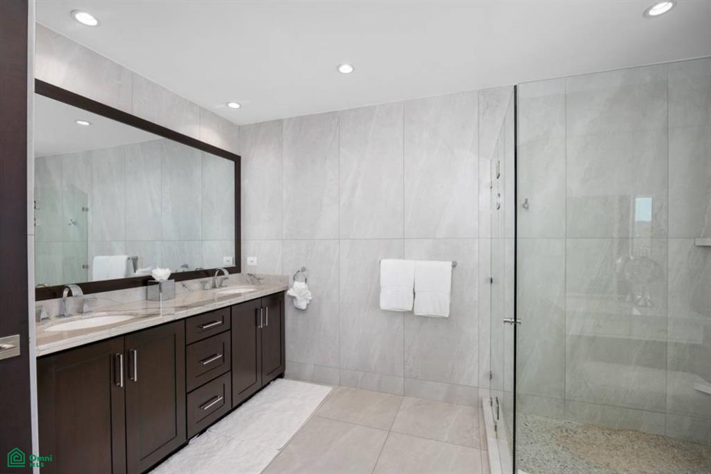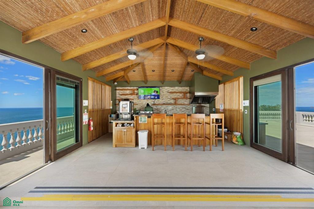 Upon entering the condo you are immediately greeted with a spacious kitchen, designed for both functionality and style. Solid wood cabinetry, high-end appliances, gorgeous granite countertops, along with a full-wall custom bar with an ice maker and wine fridge are sure to delight! The kitchen flows seamlessly into the open-concept dining and living areas. The living room, with 2 seating areas, extends effortlessly onto a generous outdoor veranda, creating the perfect setting to enjoy the serene beauty of the coastline.