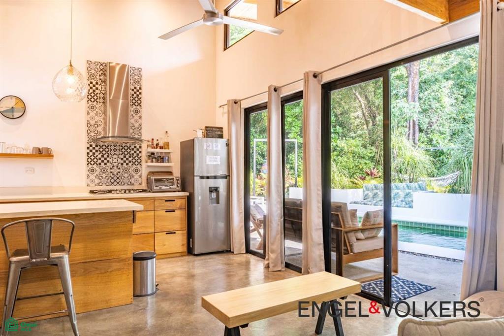 Just 900 meters away, Playa Sámara offers calm turquoise waters ideal for swimming, kayaking, paddleboarding, and beginner surfing. The nearby town center provides restaurants, organic cafés, boutique shops, yoga studios, and live music.