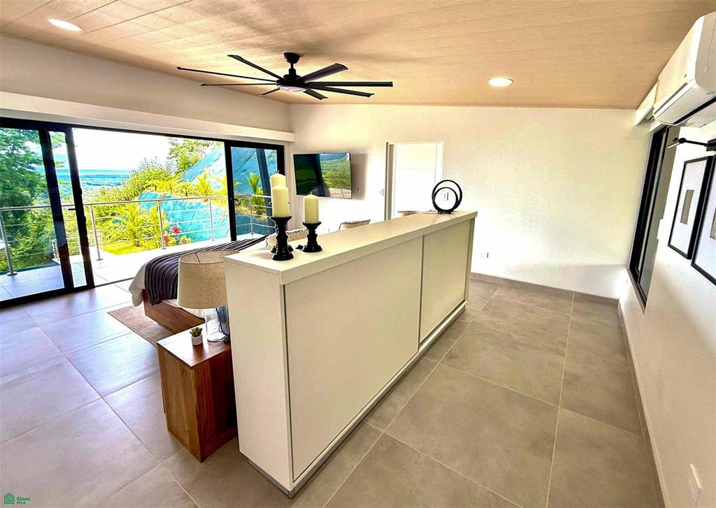 Private Sanctuaries All four spacious bedrooms are en-suite sanctuaries with king beds, A/C, and big-screen TVs. Each room offers unobstructed coastal views, while three also capture the lush forest and mountains. A highlight is the second-story guest suite with a separate entrance and private balcony—perfect for rental income or guest privacy.
