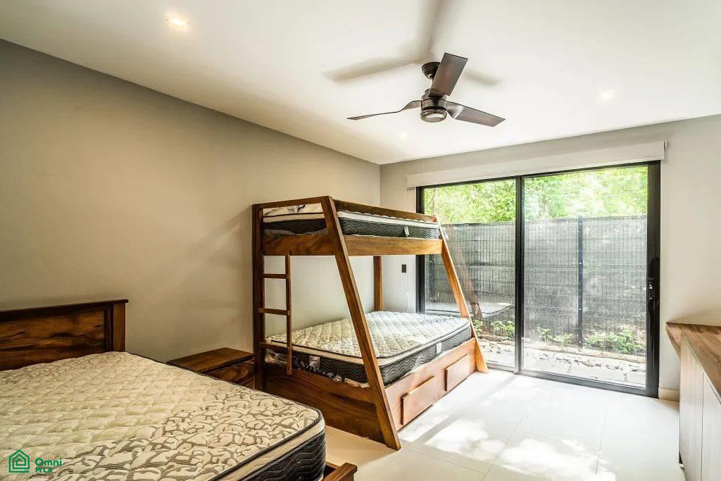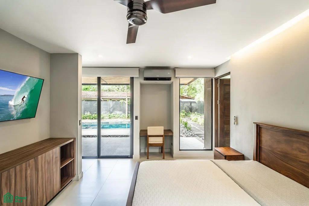Casa Las Baulas is thoughtfully designed to balance elegance with functionality. The expansive outdoor pool and deck area blend with the modern kitchen and living area. The home has two guest bedrooms on the lower level each with its own en suite bathrooms. Upstairs is a third guest bedroom with en suite bath and the spacious master Suite both over loking the pool and garden area. Strategically located away from the common areas, the bedroom wing ensures privacy ensuring rest and relaxation.