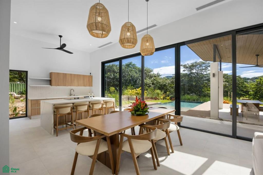 The home's outdoor area is designed for ultimate relaxation, with a stunning infinity pool that overlooks the golf course, a large covered kitchen, BBQ and dining area for outdoor dining, and a modern kitchen with granite countertops and wood cabinetry. It's only a 5-minute walk from the Beach Club and the famous white sands of Playa Conchal beach, making it the perfect place for beach lovers.