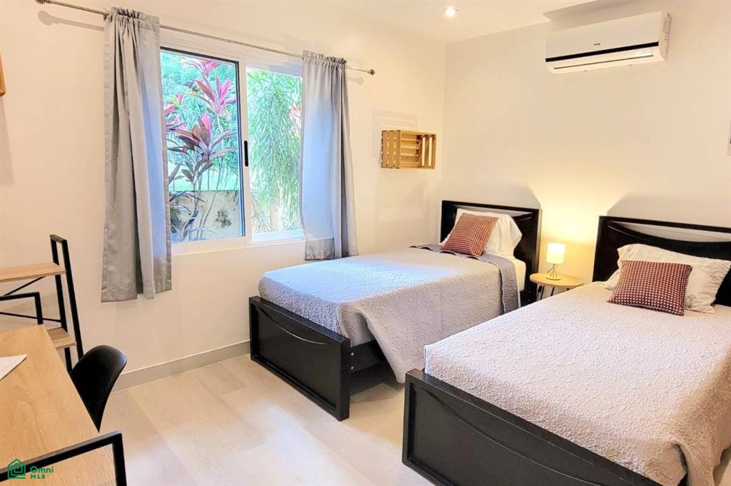 A 32 m² swimming pool, a large covered terrace, and a 50 m² closed garage enhance the property’s appeal. Sold fully furnished with stylish décor, the home includes polished concrete floors, granite countertops, air conditioning, and ceiling fans.