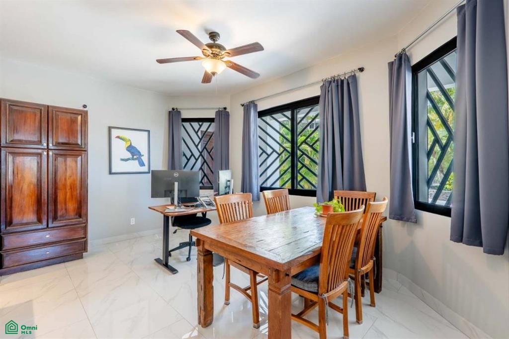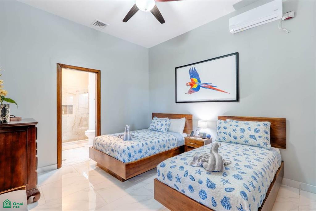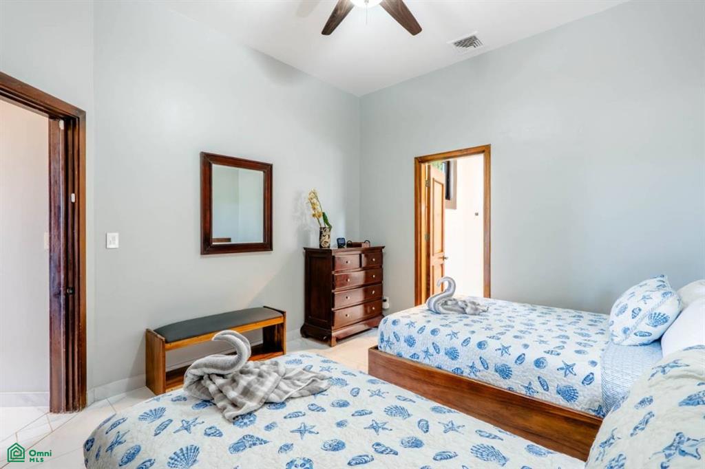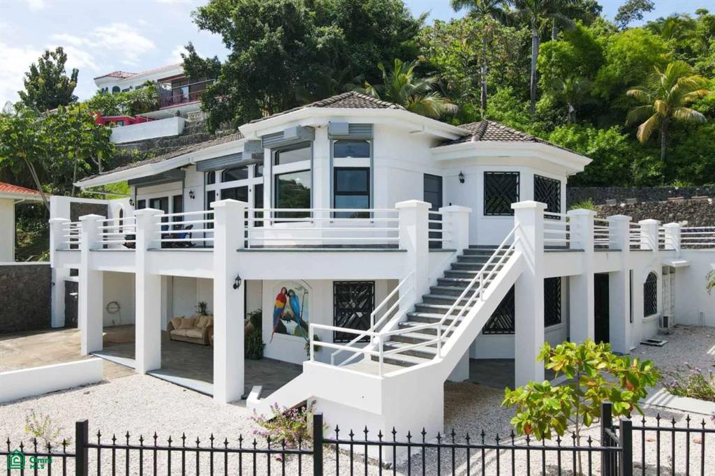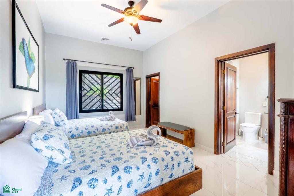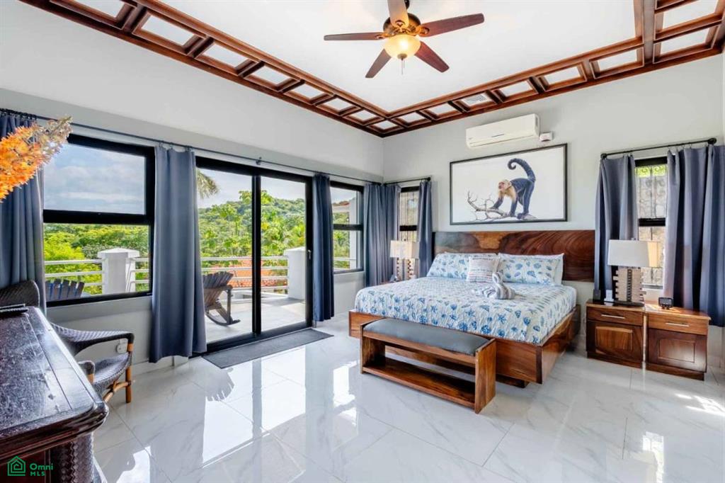 The property’s best feature is the impressive, open-air pavilion. Situated on the highest tier of the estate, this grand structure features a beautiful thatched roof and is a complete entertainment hub. It includes a full-service bar, a kitchen, a bathroom, and multiple zones for lounging, recreation, and fitness. The pavilion overlooks a large swimming pool, a heated jacuzzi, and a sun-drenched deck—all offering ocean views. The lower level of the villa provides a two-car garage with a large, secure storage room. It also houses a fully independent guest suite with its own kitchen, dining area, bedroom, and bathroom. Adjacent to this apartment is an additional bedroom with a private ensuite. Crafted for large gatherings, Villa Perfecta Vida is perfectly suited for family and friends seeking to enjoy Costa Rica’s idyllic climate. The professionally landscaped, terraced gardens provide a tranquil and secluded atmosphere. With over 8,700 square feet of total living space, including the 3,490-square-foot outdoor terraces and pavilion, this home provides immense scale.