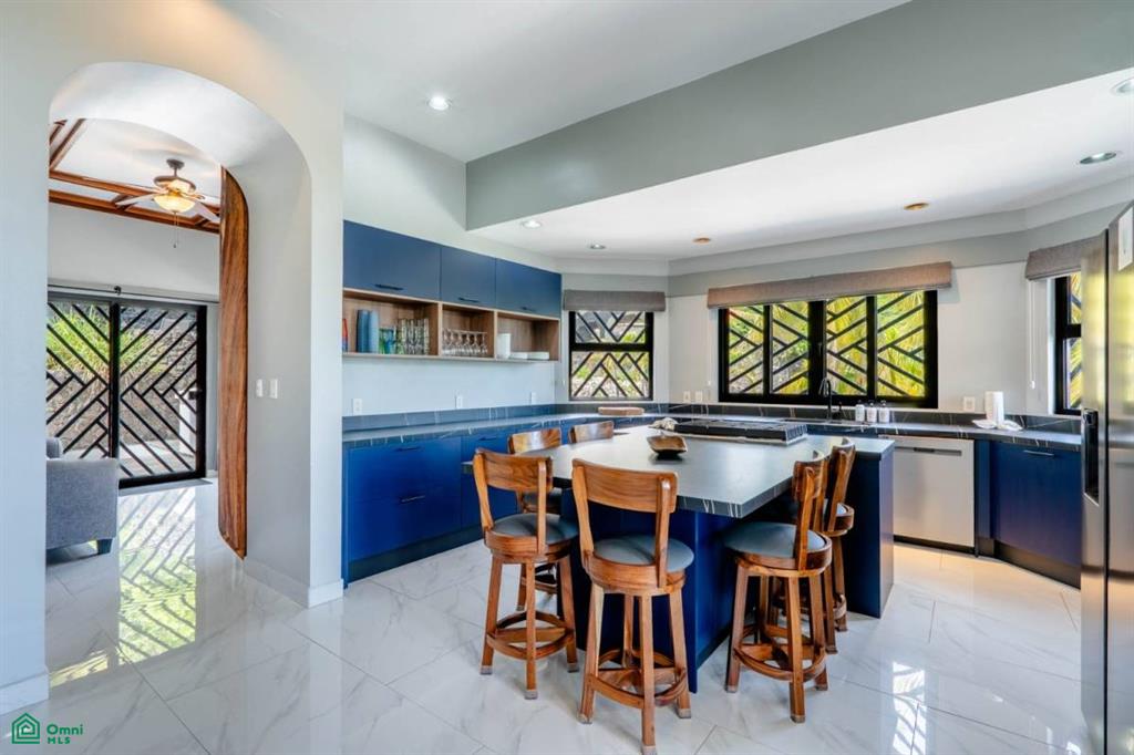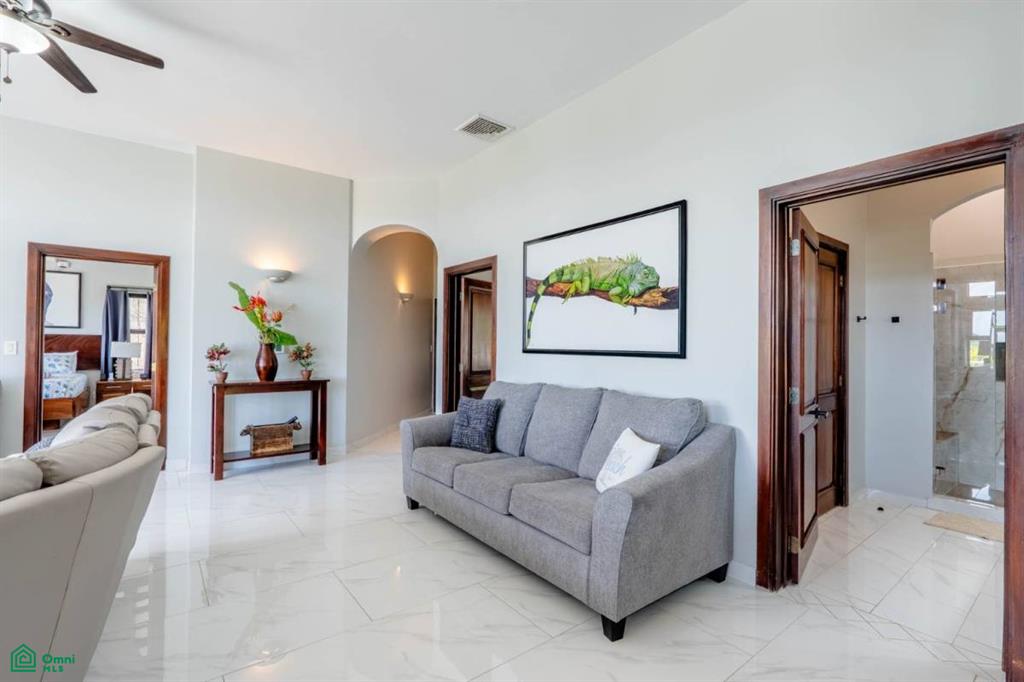 The upper level is the heart of the home, meticulously designed to create a seamless flow between indoor and outdoor living. A grand living area, flooded with natural light, opens directly onto an expansive, wraparound terrace, providing multiple vantage points to savor the ocean views. The gourmet kitchen, a chef’s dream, is equipped with top-of-the-line appliances and connects effortlessly to the sophisticated dining room and living space. This level also includes three spacious bedrooms, each with a full bathroom and huge closet. The primary suite is a true sanctuary, with its own access to the terrace and stunning ocean views.