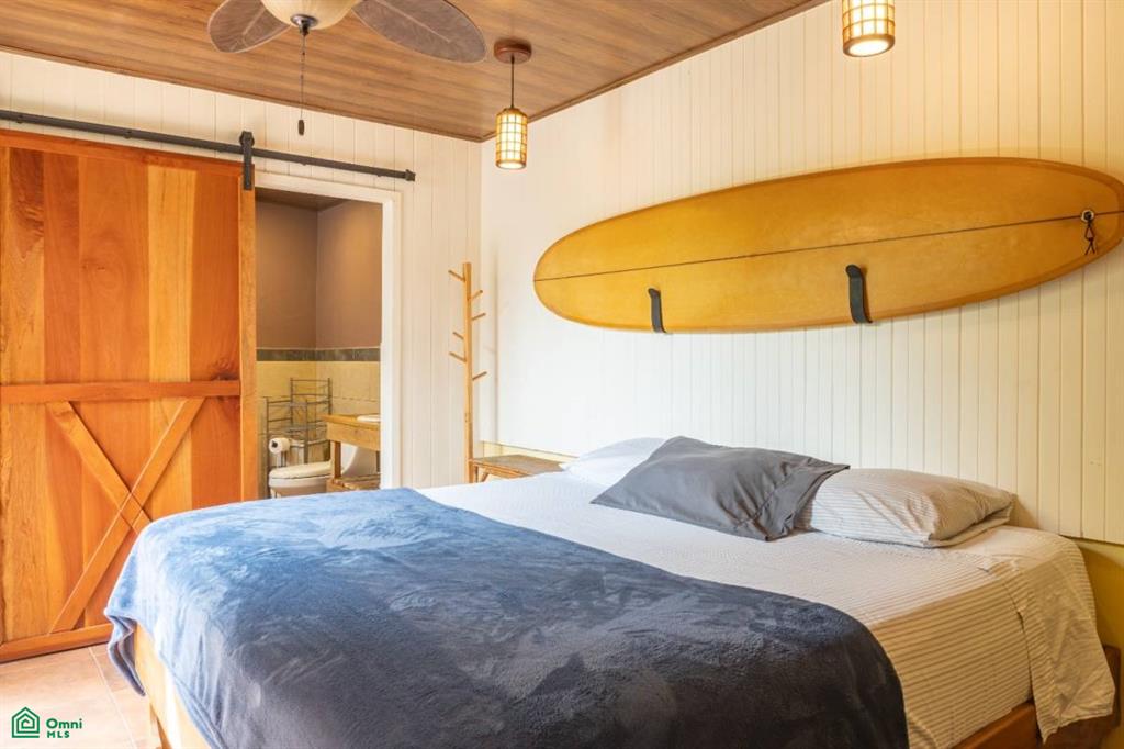 One of the home’s standout features is its location. Directly across from a quiet park with a playground and basketball court—rare amenities for the area—a short path and steps lead straight to Playa Carrillo without ever crossing a main road. The villa is also close to the area’s best fútbol field, restaurants, schools, and shops.