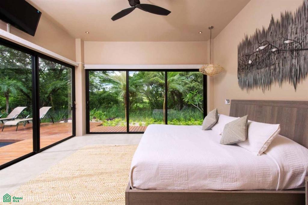 Step into seamless indoor-outdoor living, where expansive glass doors open to a private pool, Trex deck, cozy lounge areas, and lush tropical surroundings. At the heart of the property stands a magnificent Guanacaste tree, creating a natural centerpiece that enhances the home’s unique design. By day, enjoy sun-drenched spaces perfect for relaxation; by night, the villa comes alive with ambient lighting that creates a truly magical atmosphere.