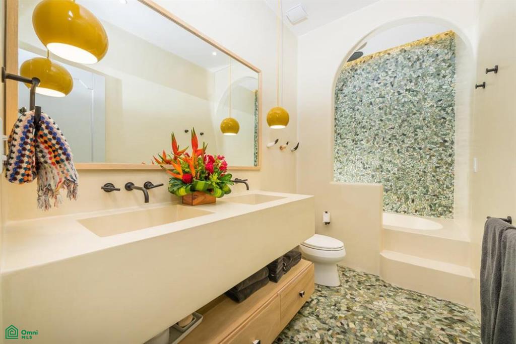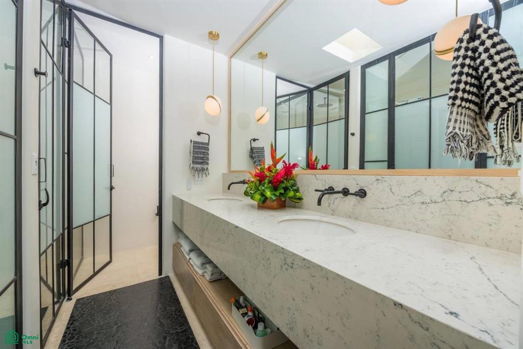 Spanning an impressive 5,000 square feet, this residence showcases a harmonious blend of Grecian and Italian influences, creating a timeless and elegant design. The innovative built-in furniture throughout the house not only reduces clutter but also adds an abundance of space and sophistication to each room.