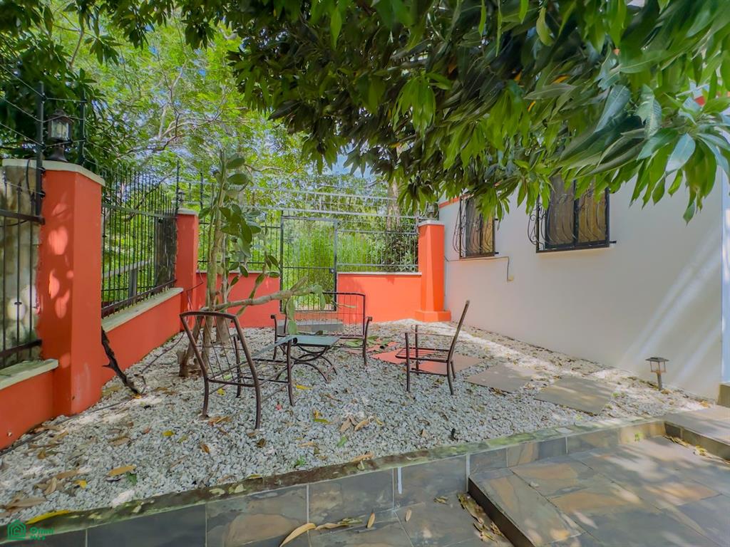 The separate guest house feels like its own private retreat. It includes two bedrooms, one bathroom, a full kitchen, bright living area, and a cozy outdoor sitting space. With its own plunge pool, it is ideal for hosting family or friends, and also offers rental potential.