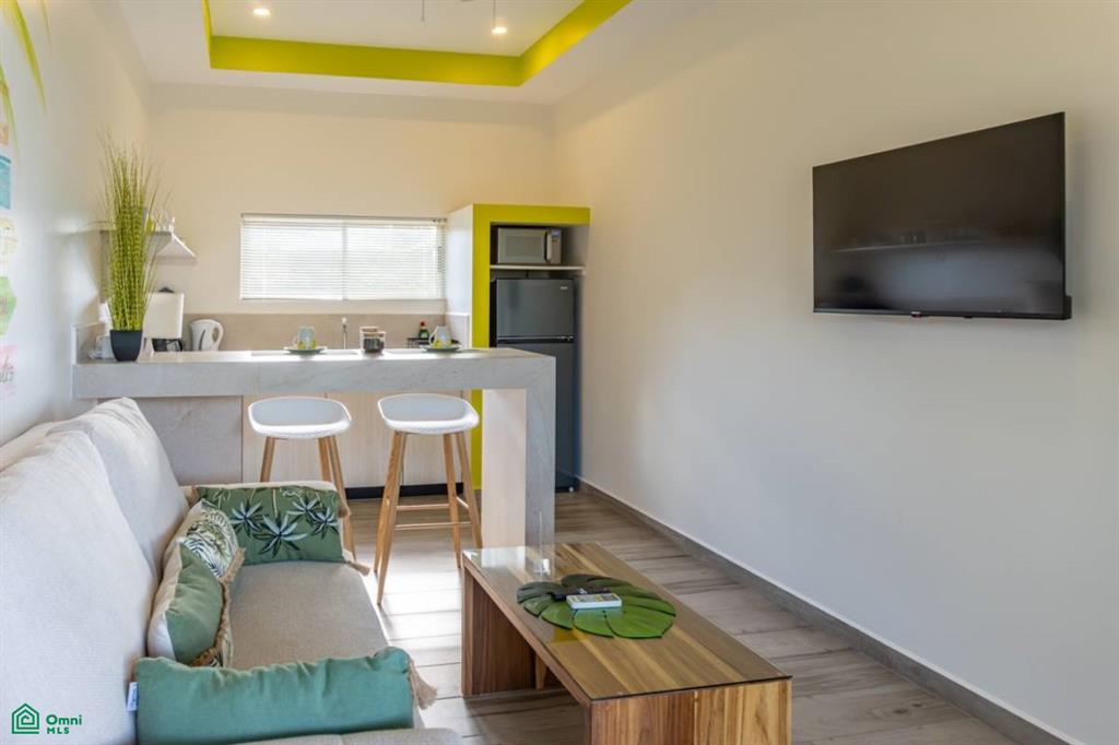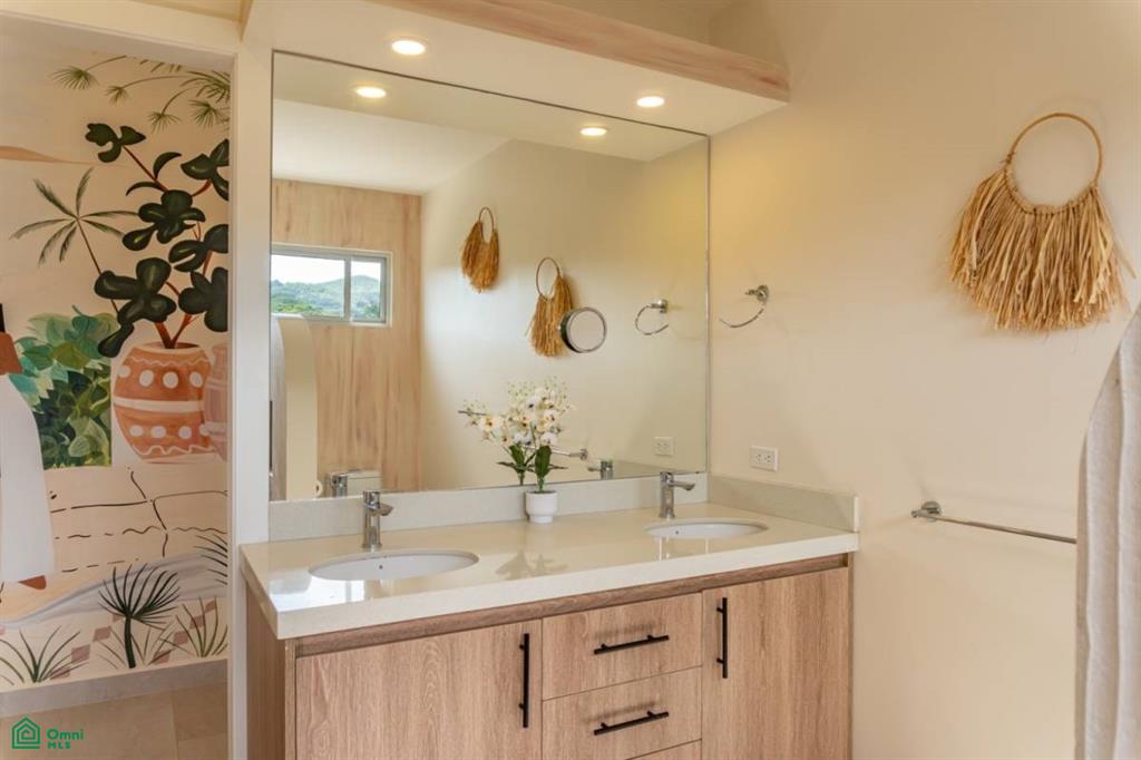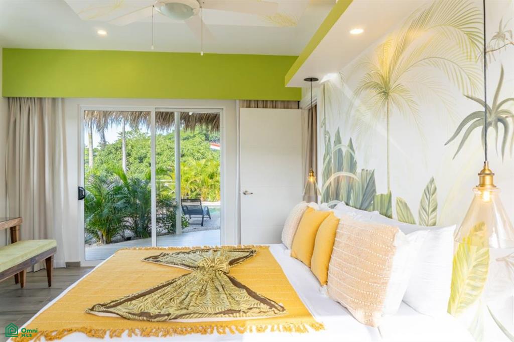 professionally designed and decorated by an interior designer, with a cohesive tropical modern aesthetic that elevates the experience throughout. The home features a bright open kitchen, a welcoming living area, and a master suite that opens onto a private terrace with a second pool and panoramic ocean views.