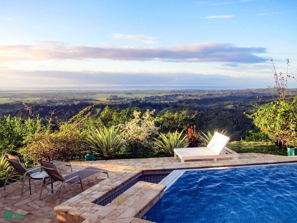 • Views: Pacific Ocean, jungle, and mountain