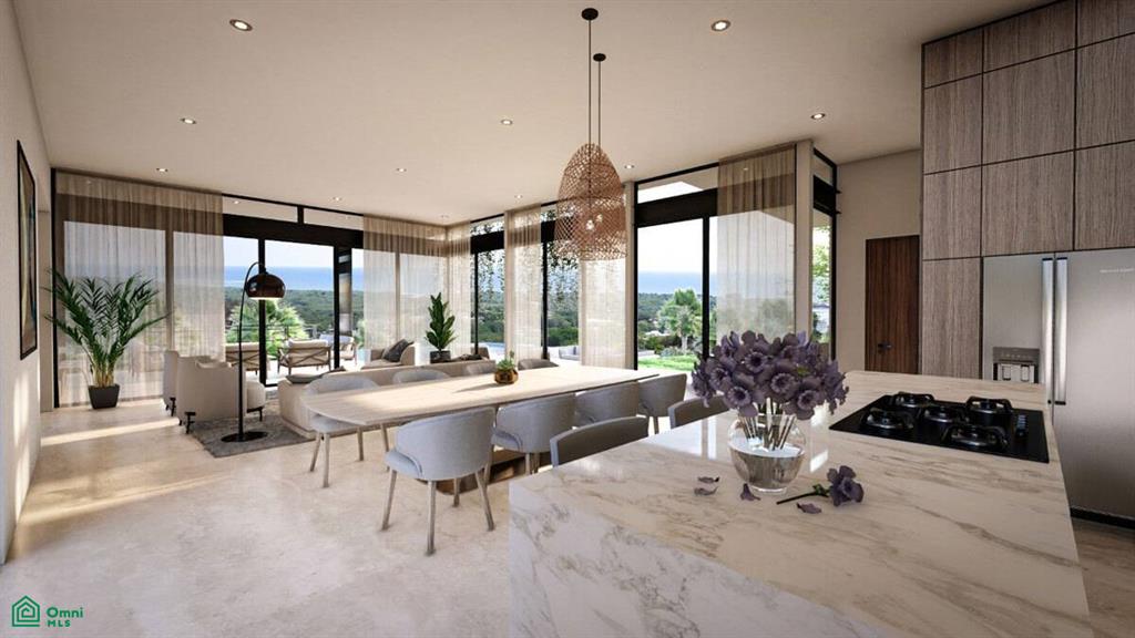 Six bedrooms with six en-suite baths are complemented by 2 additional powder rooms – with 3 of the bedrooms serving as Master Suites! As always, a spacious open plan is utilized to maximize views and entertaining with friends in the gourmet kitchen/living and dining area. Outside terraces lead to the infinity pool which is flanked by a generous covered terrace plus sunken living/social area. Outdoor kitchen and BBQ areas are ample and designed to easily entertain friends and family in style.