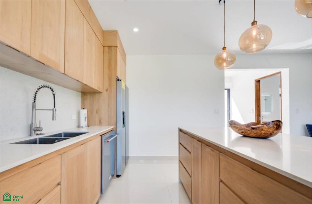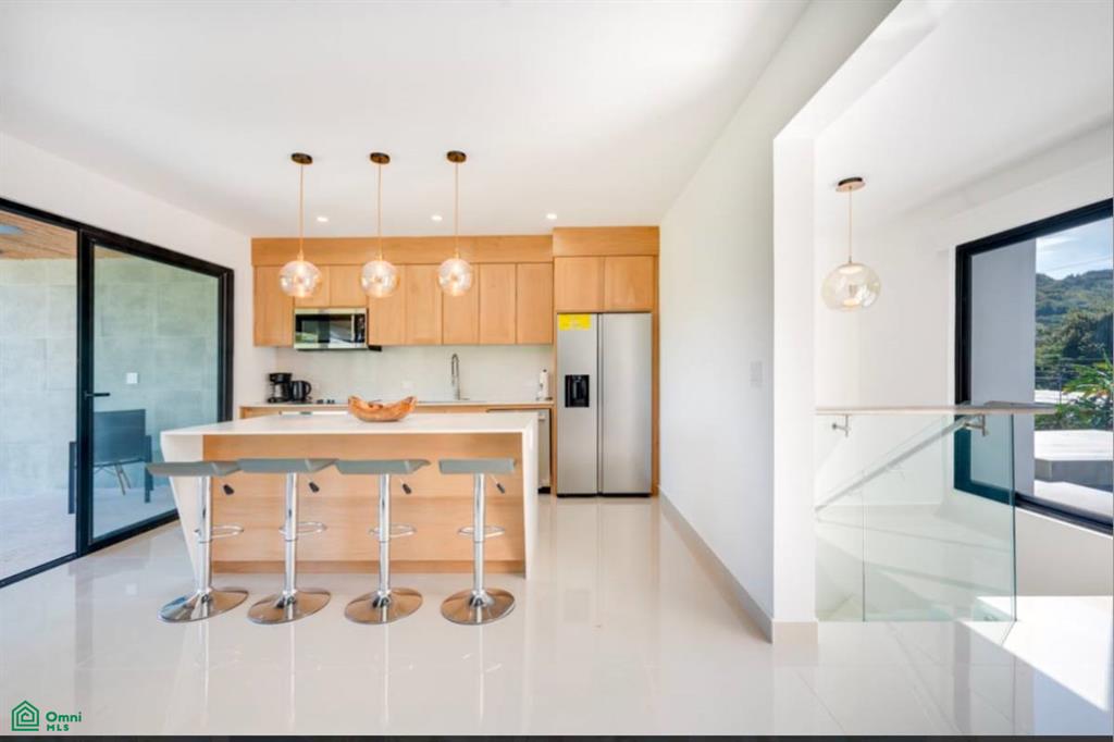 The second floor offers spacious living and dining areas, a modern kitchen, and a terrace with stunning ocean views of Flamingo and Potrero Bay.