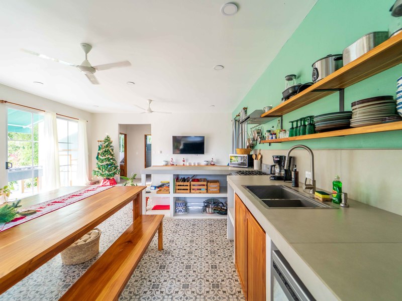 Located separately on the property, Casa Colores is a newer three-bedroom home completed in 2024. Set among mature trees and lush vegetation, it offers a quiet, private atmosphere while remaining completely independent from the main house. The home features an open floor plan with a bright kitchen, dining, and living area that opens onto a covered patio overlooking the surrounding jungle. The bedrooms are well-proportioned, and the home is designed for easy, low-maintenance living. Casa Colores works well as a guest house, long-term rental, caretaker’s home, or second vacation rental.