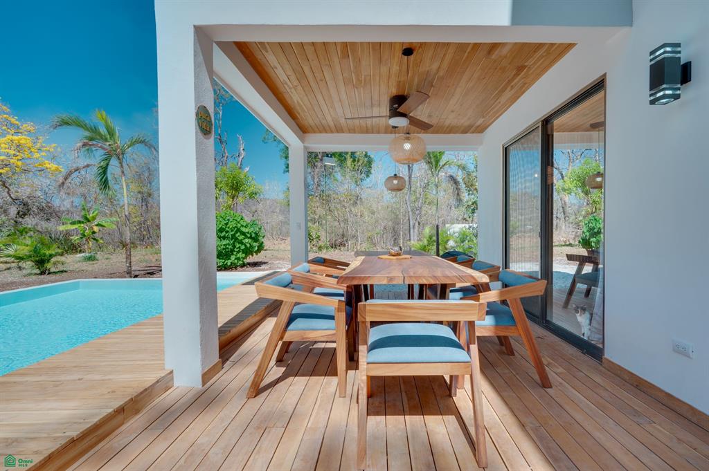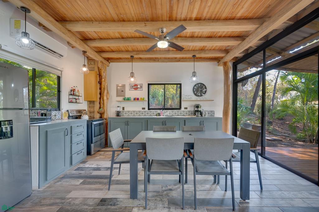 The property is fully enclosed, with an electric gate and a tropical garden with drip irrigation.