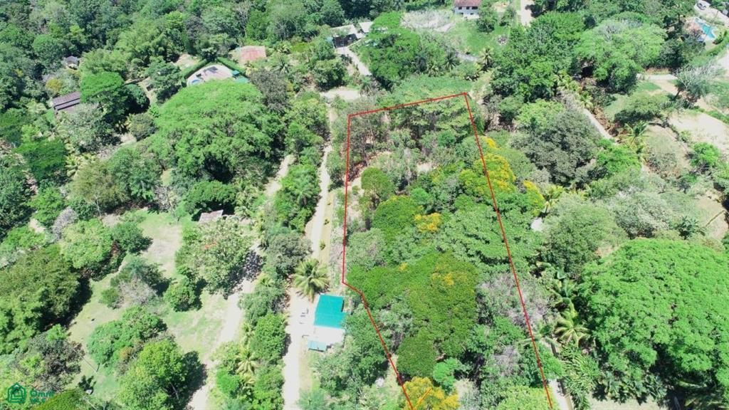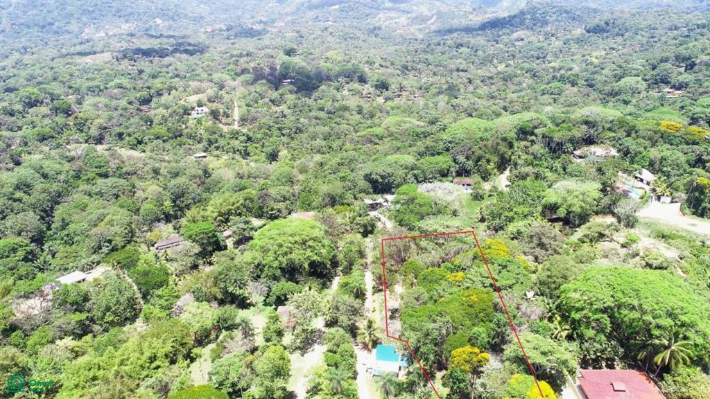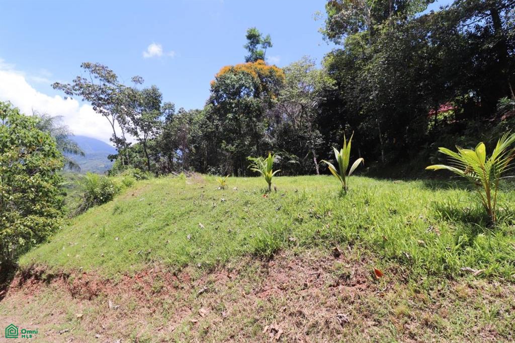 Large trees growing on the lot give shade to all potential structures and areas and provide shelter and natural habitat to numerous tropical birds and animals. Monkeys, macaws, toucans, brilliant butterflies and many other tropical animals are routinely seen in this area. The lot is on a slope which slowly steepens towards the top. The view of the jungles, farms and mountains from the top of the property is amazing – the ranges rise over 1,000m above the town and their peaks are often shrouded in dancing white clouds, the elevated location of the plot catching the refreshing mountain and sea breezes.