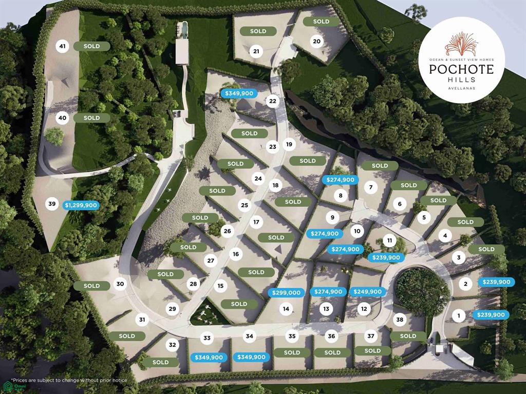 Pochote Hills is a newly developed, gated community of just 41 homesites, located less than half a mile from the sands of Playa Avellanas. The project is defined by tropical modern design principles and built with first-class infrastructure, including concrete roads, underground utilities, and 24/7 guarded access. A formal homeowners association with clear bylaws ensures architectural cohesion, protected view corridors, and a long-term vision for the community. Residents will enjoy a secure environment, an ocean-view clubhouse, and a setting that prioritizes privacy, nature, and lasting quality. Anchored by a majestic 150-year-old pochote tree at its entrance, the community reflects a deliberate respect for scale and landscape. Homesites throughout Pochote Hills capture ocean, mountain, and valley views, creating a sense of elevation and openness that is increasingly rare so close to the coastline. With approximately 70 percent of the community already sold, remaining homesites range from roughly one-quarter to three-quarters of an acre, offering a limited selection of view orientations and price points. Pochote Hills presents a compelling opportunity to secure land in one of Guanacaste’s most desirable emerging coastal enclaves, where location, infrastructure, and scarcity converge.