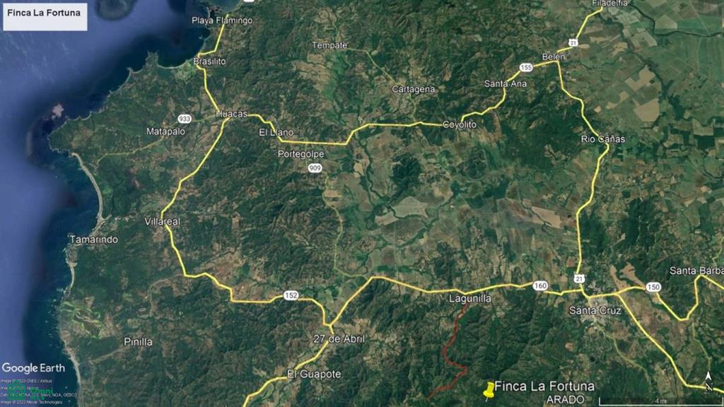 The Finca just exited 30 years of Land Conservancy under FONAFIFO, now first time for sale. Wildlife abounds with three natural year-round springs, formerly 40 acres used as pasture land for 30 cattle and light farming. The property is shaped like a half bowl with ascending ridge lines going up to 800 feet and boasts plenty of exotic hardwoods and truly a chance to craft a unique piece of paradise. There is a great internal ridge ideal for building your private estate, there is power running along the 1.6 km of a public road, which forms your southern border, and the half bowl to the north of the road is the property, La Fortuna is 30 minutes from Tamarindo 20 minutes from Hacienda Pinilla and 20 minutes from Santa Cruz. A truly unique opportunity to be close to everything and also escape into pure nature.