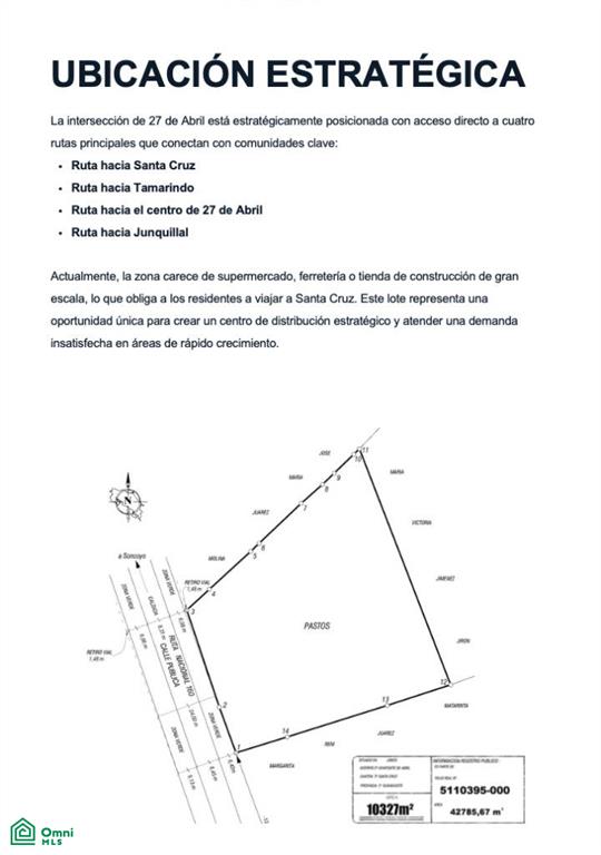 This is a unique opportunity to establish a commercial hub in a fast-developing area. Currently, there is a lack of large-scale supermarkets, hardware stores, and construction supply centers, with residents needing to travel to Santa Cruz for such services. This lot is ideal for businesses like hardware stores, construction suppliers, or real estate developers.